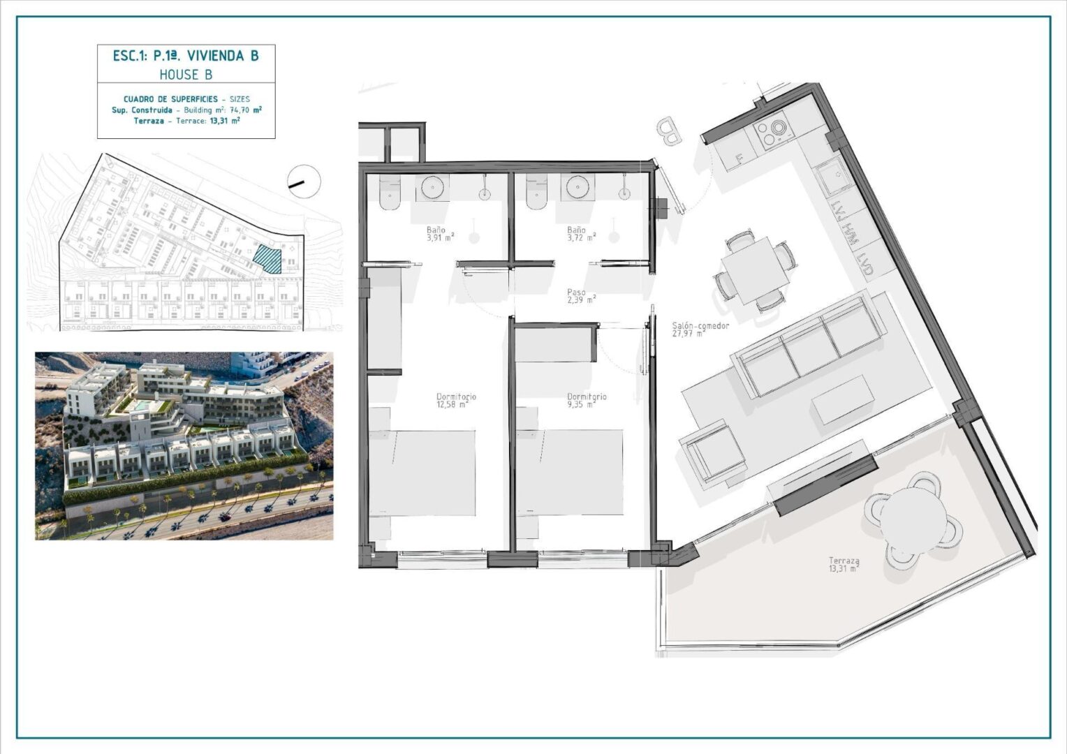 Der Neubaukomplex besteht aus 36 Wohnungen mit 3 und 2 Schlafzimmern, verteilt auf 4 moderne Blöcke, ausgestattet mit 2 Gemeinschaftspools und einer Gemeinschaftsgarage mit Parkplatz und Abstellraum für jede Immobilie; und 10 eleganten Villen mit 4 Schlafzimmern und 3 Bädern, jede mit eigenem Pool.