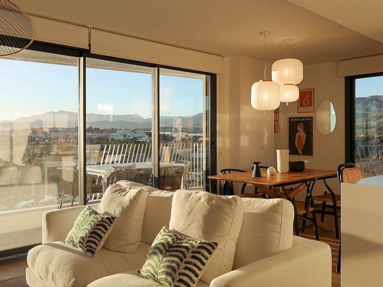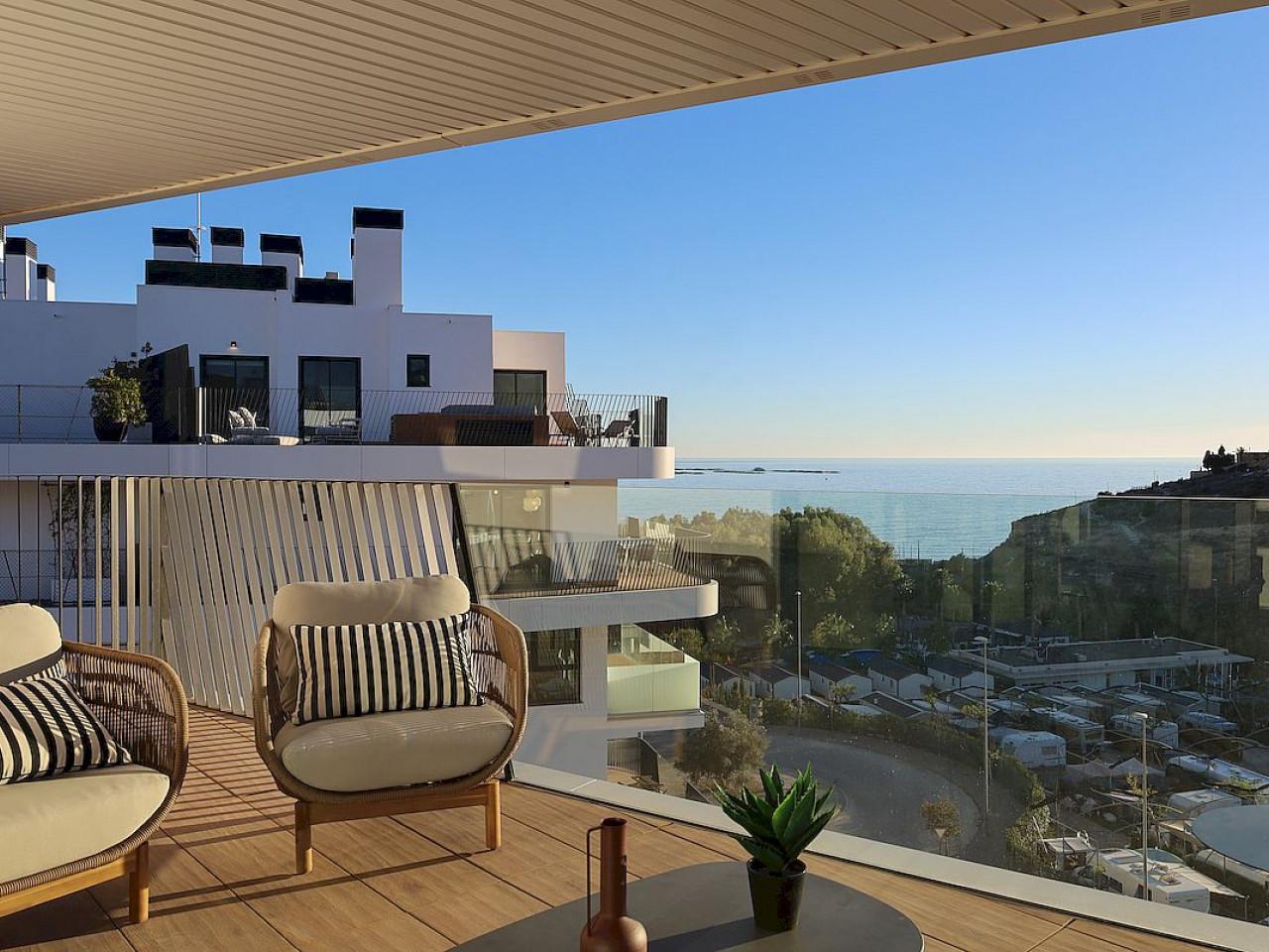 Die Anlage besteht aus Ein-, Zwei- und Dreizimmerwohnungen (mit Einbauschränken), einem oder zwei Badezimmern (en-suite zum Hauptschlafzimmer in der Drei-Schlafzimmer Variante), voll ausgestatteter moderner Küche (einschließlich Haushaltsgeräte) und offenem Wohn-/Esszimmer, das zu einer großen Terrasse mit Blick auf das Gemeinschaftsschwimmbad und die Landschaftsgärten, die bis zum Mittelmeer führen.