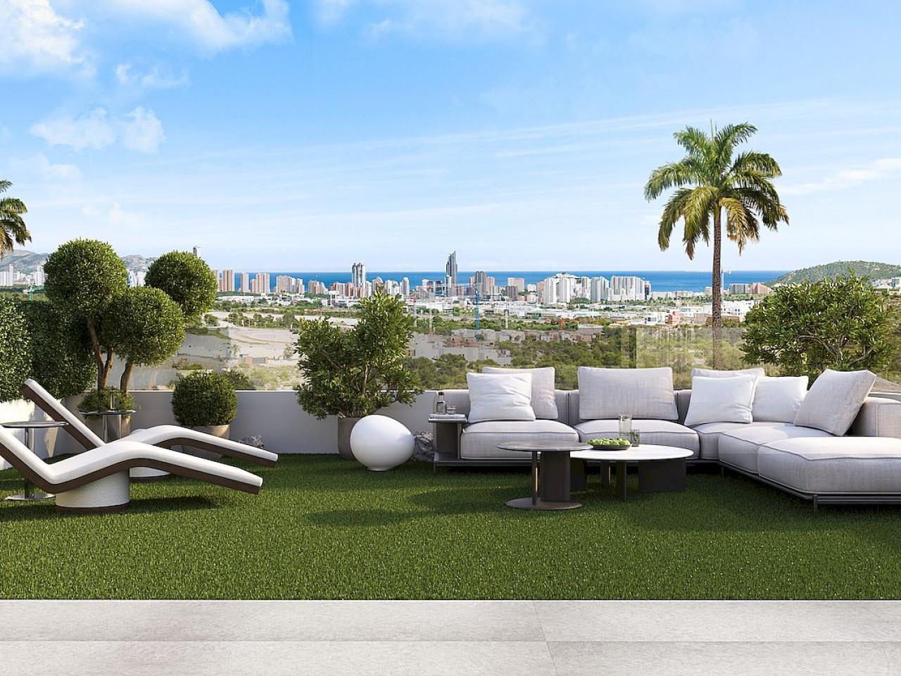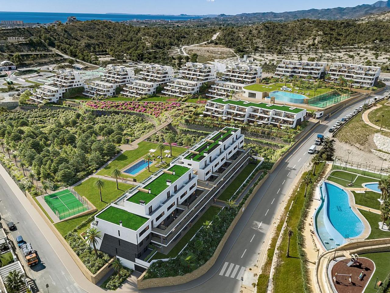 Serpentine ist ein Neubau Luxus-Wohnanlage von Bungalows, Wohnungen und Penthäuser mit Meerblick in Finestrat.