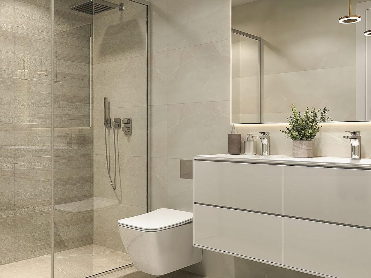 Schöne Eigenschaften hat 2 Schlafzimmer, 2 Bäder, offene Küche mit dem Wohnbereich, Einbauschränke und große Terrasse, die alle in einer offenen Konfiguration ohne Hindernisse für den Meerblick. Jede Eigenschaft hat einen privaten Parkplatz und Abstellraum.