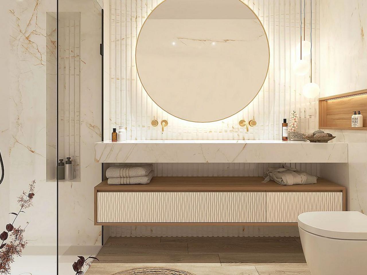 Die Anlage besteht aus zwei 9-stöckigen Blöcken mit 1- bis 3-Zimmer-Wohnungen, die über einen geräumigen Wohn- und Essbereich mit amerikanischer Küche und Terrassentüren verfügen, die zu einer Terrasse mit Meerblick führen. Außerdem gibt es landschaftlich gestaltete Gemeinschaftsbereiche, einen beeindruckenden Swimmingpool, einen Fitnessraum und eine Sauna.
