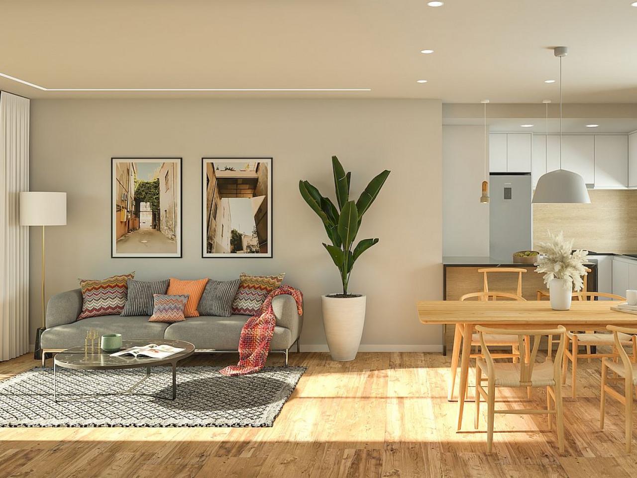Diese Wohnungen haben die Möglichkeit von zwei oder drei Schlafzimmern und zwei Bädern, Wohnzimmer mit offener Küche und Terrasse. Die Wohnungen im Erdgeschoss verfügen über eine große Terrasse und einen Garten, die Wohnungen im zweiten Stock über eine große private Sonnenterrasse.