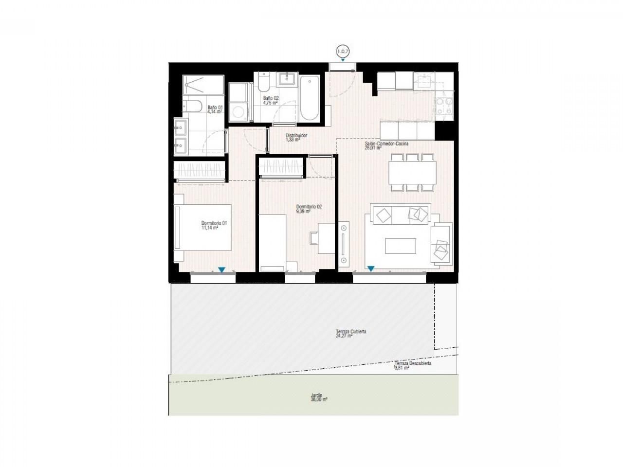 Jeder Winkel Ihrer Wohnung in Alonis Living ist so konzipiert, dass Sie den Raum optimal nutzen können. Die Küche und das Wohnzimmer sind in einem einzigen offenen Raum vereint, der Geräumigkeit und Helligkeit ausstrahlt. Die Küche ist mit hochwertigen Geräten ausgestattet und verbindet modernste Technik mit einem eleganten und funktionalen Design. Das Wohnzimmer öffnet sich nach außen, um das natürliche Licht als zusätzlichen Protagonisten in das Design zu integrieren. Die geräumigen und hellen Schlafzimmer laden zum Ausruhen in einer Atmosphäre ein, die Wärme und Raffinesse miteinander verbindet. In den Bädern trifft Funktionalität auf Schönheit in einem eleganten und avantgardistischen Design.