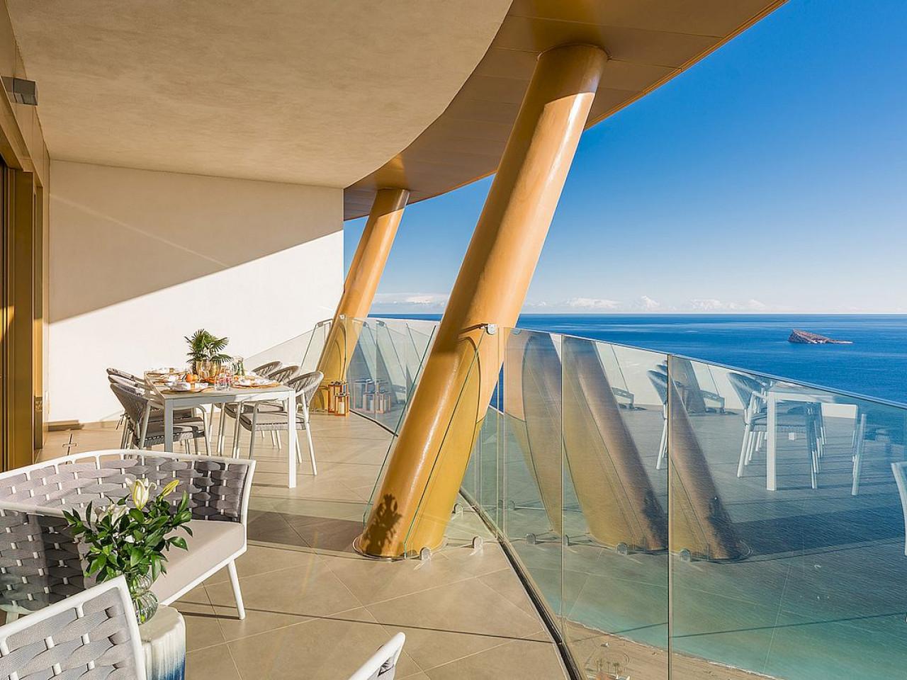 Alle Wohnungen des Intempo-Gebäudes verfügen über Meerblick und große Terrassen, von denen aus man einen spektakulären Blick auf den Poniente-Strand genießen kann.