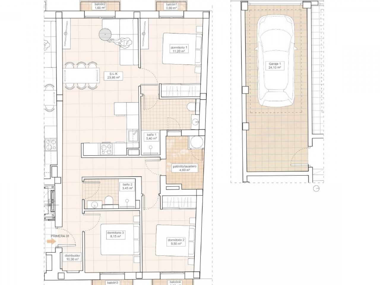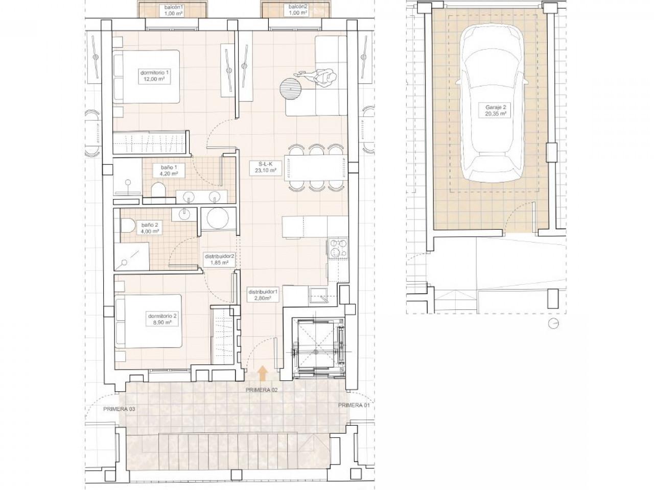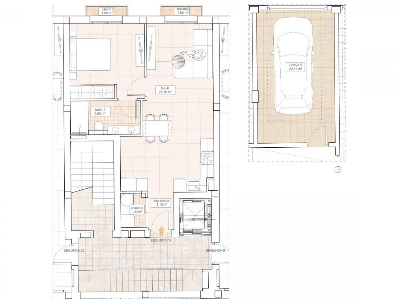 Jede Wohnung ist mit hochwertigen Materialien und Oberflächen ausgestattet, die sowohl Stil als auch Funktionalität gewährleisten, mit geräumigen Innenräumen und offenen Grundrissen. Eine private Garage im Erdgeschoss und der Zugang zum Aufzug sorgen für Komfort.