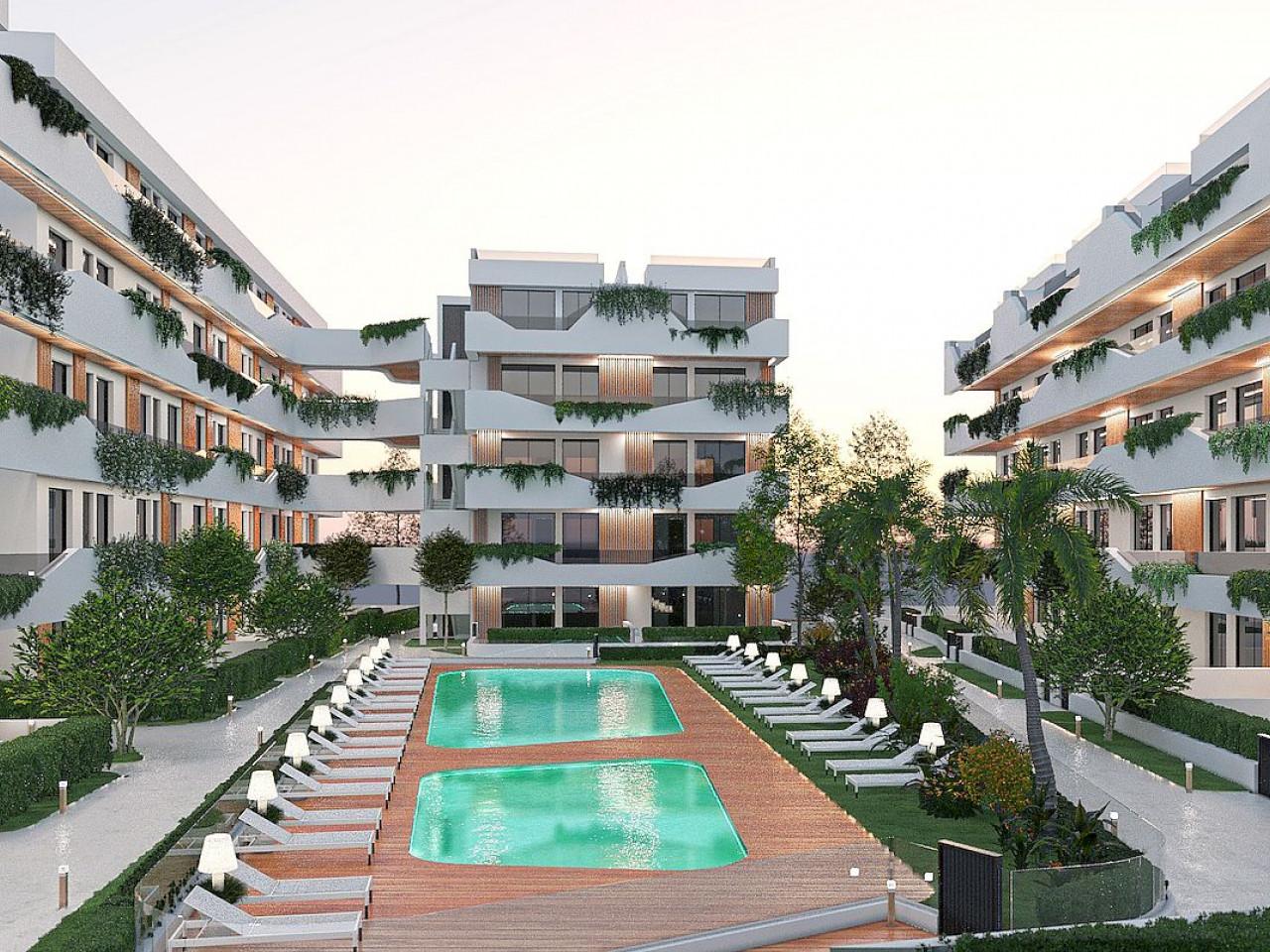 New, Apartment, Terrasse, Elevator: Yes, Basement: No, Air conditioning, White goods: Yes, Veranda, Gemeinschaftspool, Close to Beach, Close to Shops, Energy Certificate Applied,