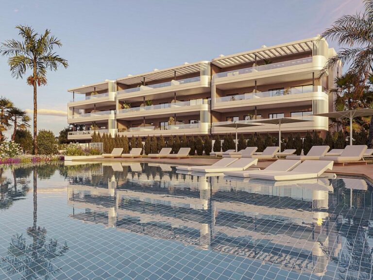 New, Apartment, Terrasse, Garten, Elevator: Yes, Basement: No, Air conditioning: Yes, White goods: Yes, Garage, Porch: No, Gemeinschaftspool, Close to Shops, Energy Certificate Applied,