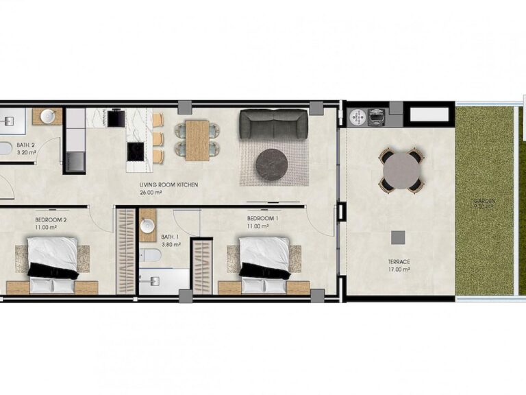 New, Apartment, Terrasse, Elevator: Yes, Basement: No, Air conditioning, White goods: Yes, Garage, Porch: No, Gemeinschaftspool, Close to Beach, Close to Shops, Furnished, Energy Certificate Applied,