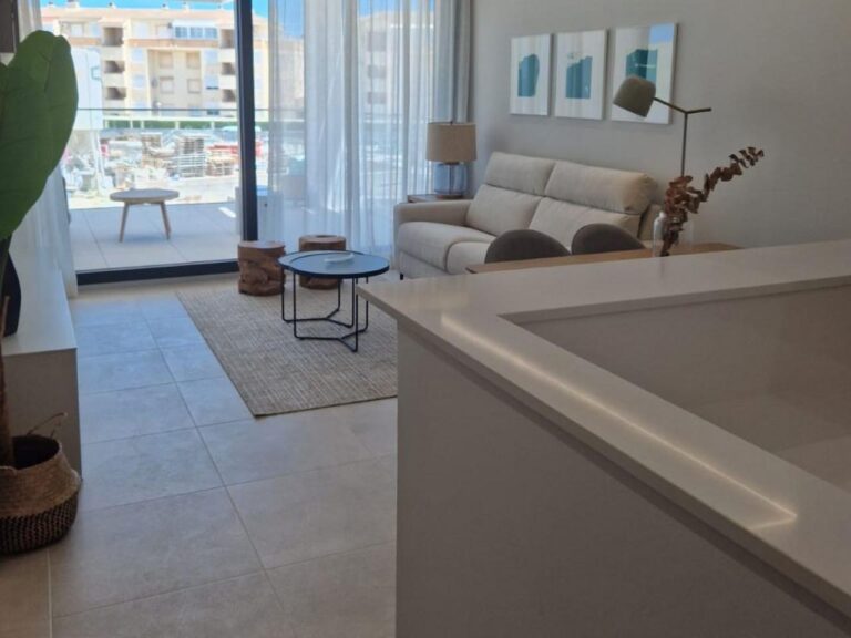 Residencial L`Estanyó, besteht aus 100 modernen Wohnungen, direkt am Strand gelegen, in einer privilegierten Umgebung, direkt an einem der am besten qualifizierten und angesehenen Strände Spaniens, mit erstklassigen Qualitäten und Meerblick, mit weitläufigen Grünflächen, Kinderspielplatz, Tiefgarage und angelegtem Gemeinschaftsschwimmbad für Erwachsene und Kinder.