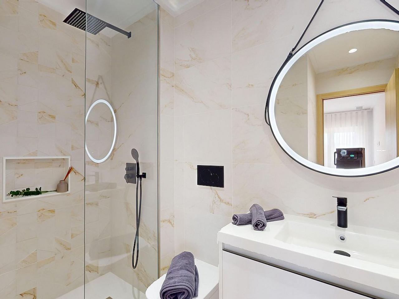 Die Wohnungen bestehen aus drei Schlafzimmern (mit Einbauschränken), zwei Badezimmern, einer voll ausgestatteten modernen Küche (mit Frühstücksbar und Haushaltsgeräten) und einem offenen Wohn-/Esszimmer, das entweder zu einem großen Garten (Erdgeschosswohnungen), einer großen Terrasse (Wohnungen im ersten Stock) oder einer privaten Dachterrasse mit Sommerküche (Dachgeschosswohnungen) führt. Jede Wohnung wird einschließlich eines Parkplatzes verkauft.