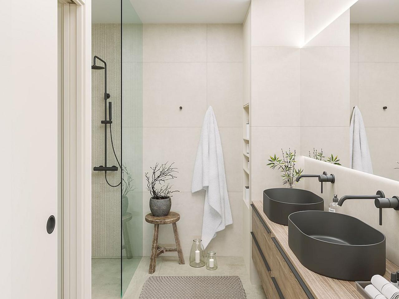 Die exklusiven Apartments mit 2 und 3 Schlafzimmern sind der perfekte Rückzugsort, um einen Lebensstil zu genießen, bei dem sich Komfort und Design mit dem Charme des mediterranen Lebensstils vereinen. In der ersten und zweiten Etage befinden sich Wohnungen mit zwei und drei Schlafzimmern und einem großzügigen Wohnbereich. Jede Wohnung verfügt über zwei Bäder (eines davon en-suite). Die Wohnungen im Erdgeschoss verfügen über einen privaten und einladenden Garten, in dem Sie sich Ihre eigene ruhige Oase schaffen können. Die Penthouse-Wohnungen mit drei Schlafzimmern verfügen über eine beeindruckende Wohnfläche von 134,90 m2 und eine große Sonnenterrasse, die Sie genießen können. Das Gefühl von Großzügigkeit zieht sich durch die gesamte Residenz, mit einem offenen Grundriss, der Wohn-, Ess- und Küchenbereich nahtlos miteinander verbindet.