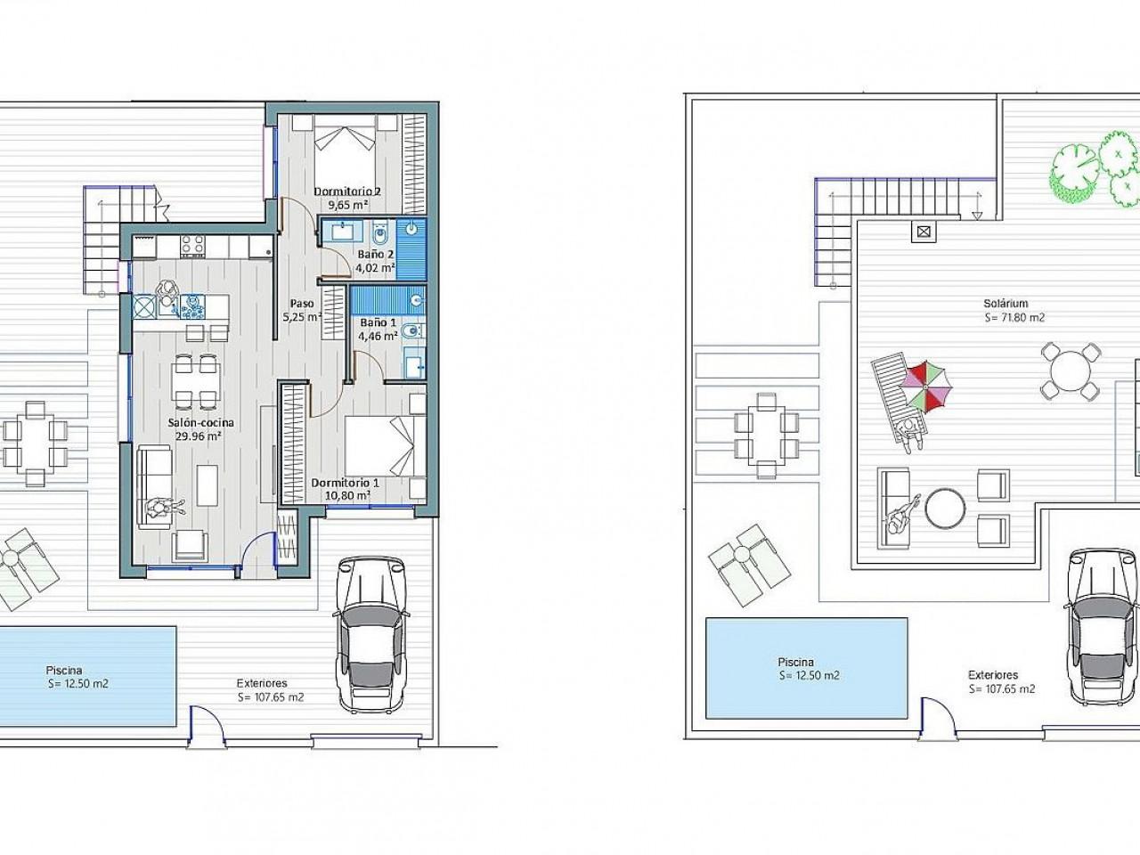 Die Außenanlagen sind nicht weniger beeindruckend, mit einer Sommerküche auf der Sonnenterrasse mit Spüle und Minikühlschrank, einem schönen Garten und einem privaten Pool mit Klärsystem und LED-Scheinwerfern, die in warmen Sommernächten zum Vergnügen werden. Darüber hinaus hat jede Villa einen eigenen Parkplatz.