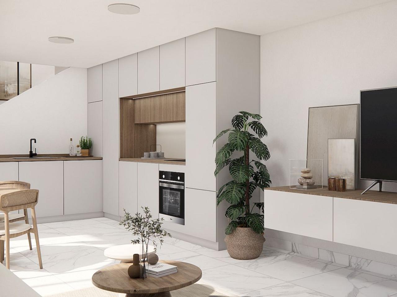 Diese zweistöckigen Häuser bestehen aus drei Doppelschlafzimmern (alle mit Einbauschränken und zwei mit direktem Zugang zu einer Terrasse im ersten Stock), einem Ankleidezimmer im Hauptschlafzimmer, zwei Badezimmern (eines davon en-suite), einer separaten Toilette, einer voll ausgestatteten modernen Küche mit Frühstücksbar und einem offenen Wohn-/Esszimmer, das zum privaten Garten mit optionalem Swimmingpool führt.
