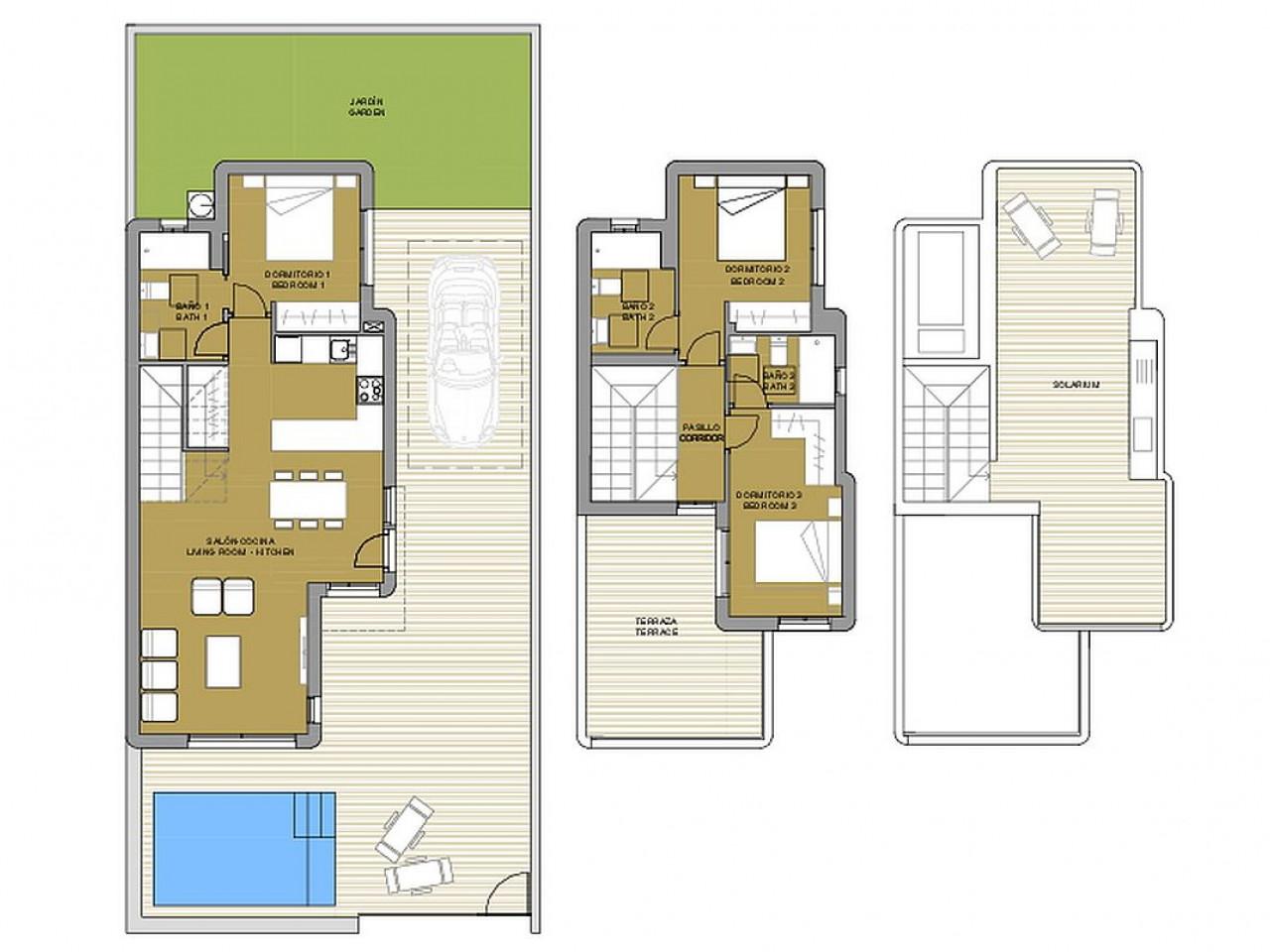 Darüber hinaus verfügen die Häuser über einen sicheren Parkplatz, einen optionalen Swimmingpool und einen Gartenbereich.
