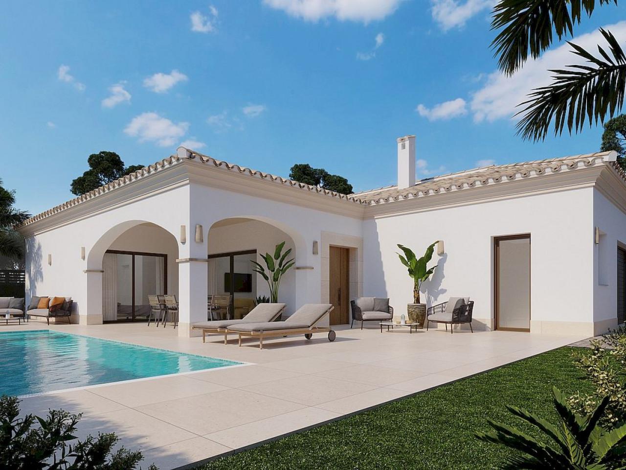 New, Villa, Elevator: No, Basement: No, Air conditioning, White goods: Yes, Garage, Porch: No, Private Pool, Close to Beach, Close to Shops, Energy rating,