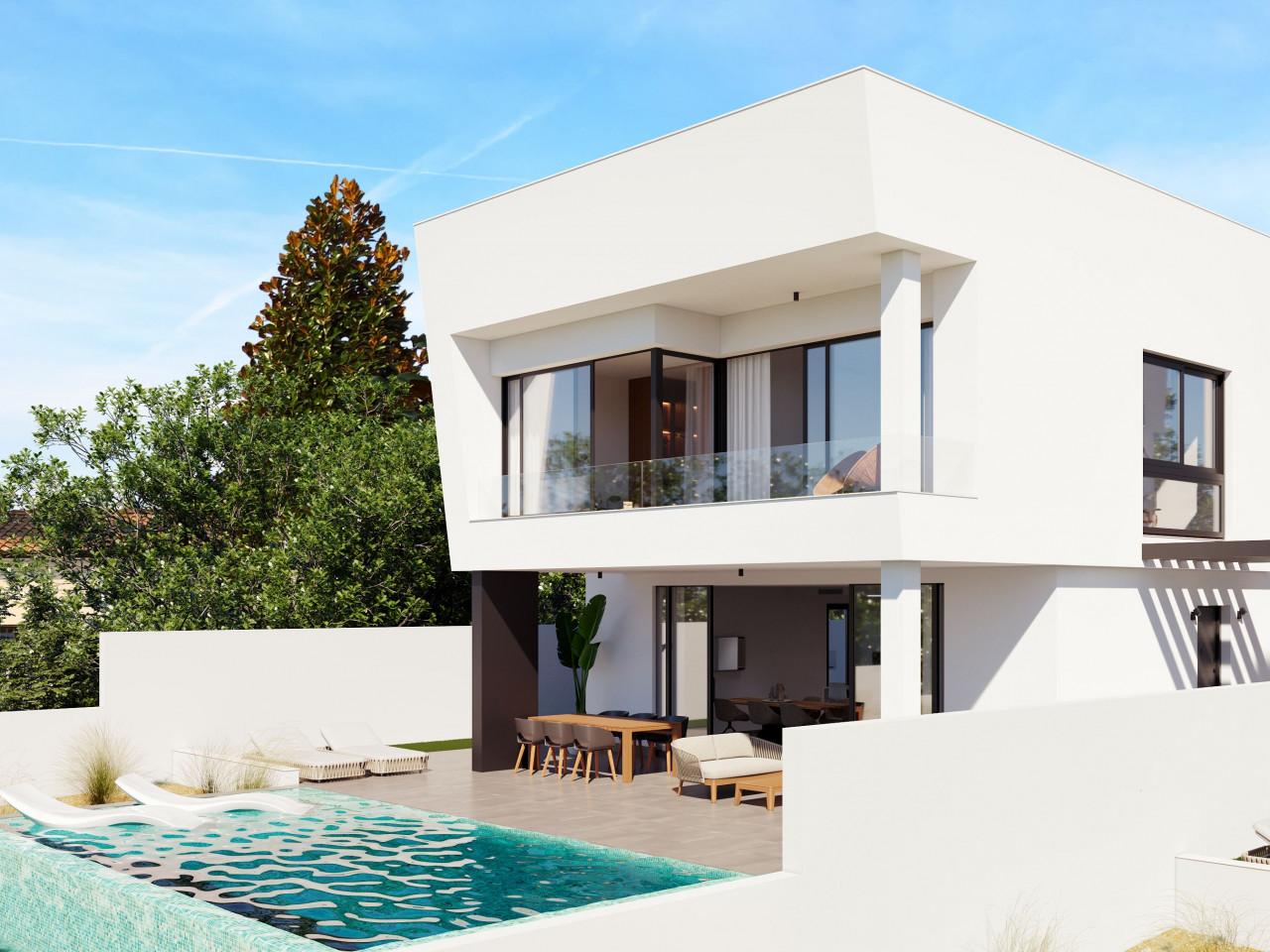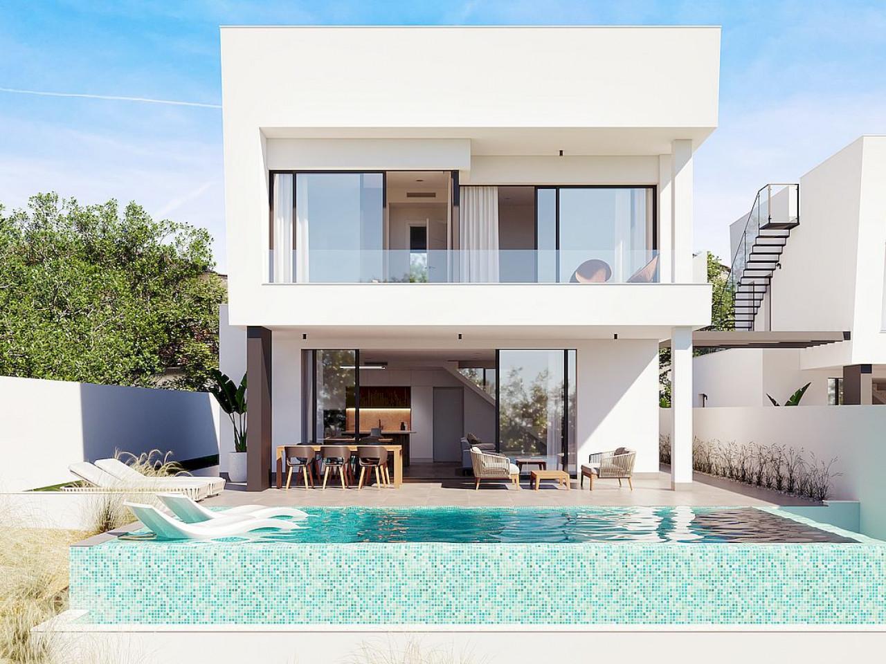 Neue Anlage in Pinar de Campoverde, Alicante, bietet 2 unabhängige Häuser mit 4 Schlafzimmern, 3 Bädern und Solarium mit Meerblick, Privatparkplatz und einem beeindruckenden überlaufenden Swimmingpool.