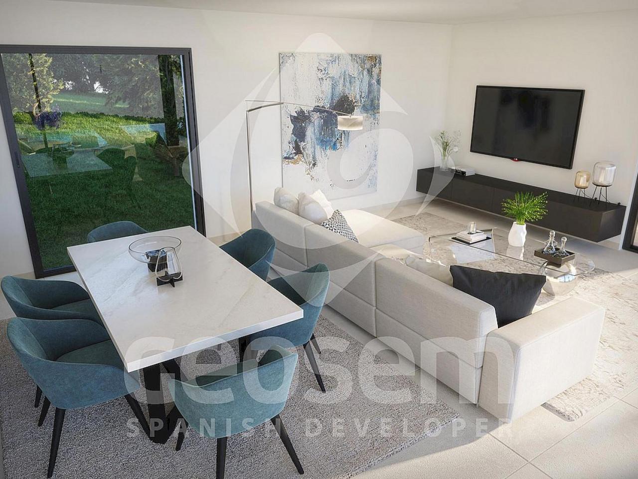 Von der Küche, dem Essbereich und dem Wohnzimmer haben Sie Zugang zur Terrasse und blicken auf das Mittelmeer.
