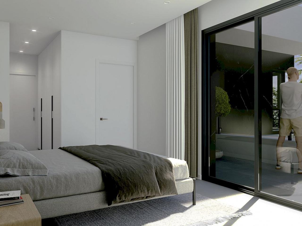 Diese Villa besteht aus drei Doppelschlafzimmern (mit Einbauschränken und privater Terrasse vor dem Hauptschlafzimmer), drei Badezimmern (zwei en-suite), einer voll ausgestatteten modernen integrierten Küche, einer Waschküche, einem geräumigen offenen Wohn-/Essbereich, der zu einer großen vorderen Terrasse mit privatem Swimmingpool führt, und einer Dachterrasse (optional), die vom ersten Stock aus zugänglich ist.