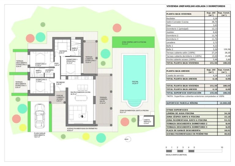 Wählen Sie aus verschiedenen Villenmodellen mit 2, 3 oder 4 Schlafzimmern und 2 Bädern (eines davon en suite), die alle auf einer Ebene angelegt sind, um maximalen Komfort zu bieten. Der Endpreis wird auf der Grundlage des gewählten Designs, des Bausystems (Bodenplatte oder Struktur) und des ausgewählten Grundstücks berechnet. Für diese Anzeige wurde ein Grundstück mit einem Preis von 60.000 Euro berücksichtigt. Wenn Sie ein anderes Grundstück wählen, wird die Differenz je nach dessen Preis gezahlt oder bezahlt.
