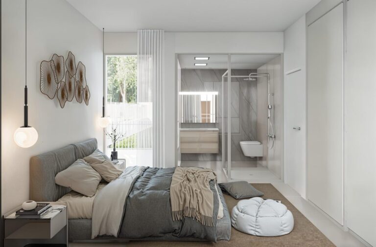 Wählen Sie zwischen zwei atemberaubenden Villenmodellen: einer freistehenden oder einer Doppelhaushälfte. Beide bieten 3 Schlafzimmer, 3 Bäder, ein Untergeschoss mit Garage, einen privaten Pool und eine großzügige Sonnenterrasse. Diese modernen, eleganten Entwürfe zeichnen sich durch helle, offene und lichtdurchflutete Räume, hochwertige Oberflächen, Klimaanlage und Fußbodenheizung in den Bädern aus. Jede Villa verfügt außerdem über einen angelegten Garten und eine voll ausgestattete Küche.