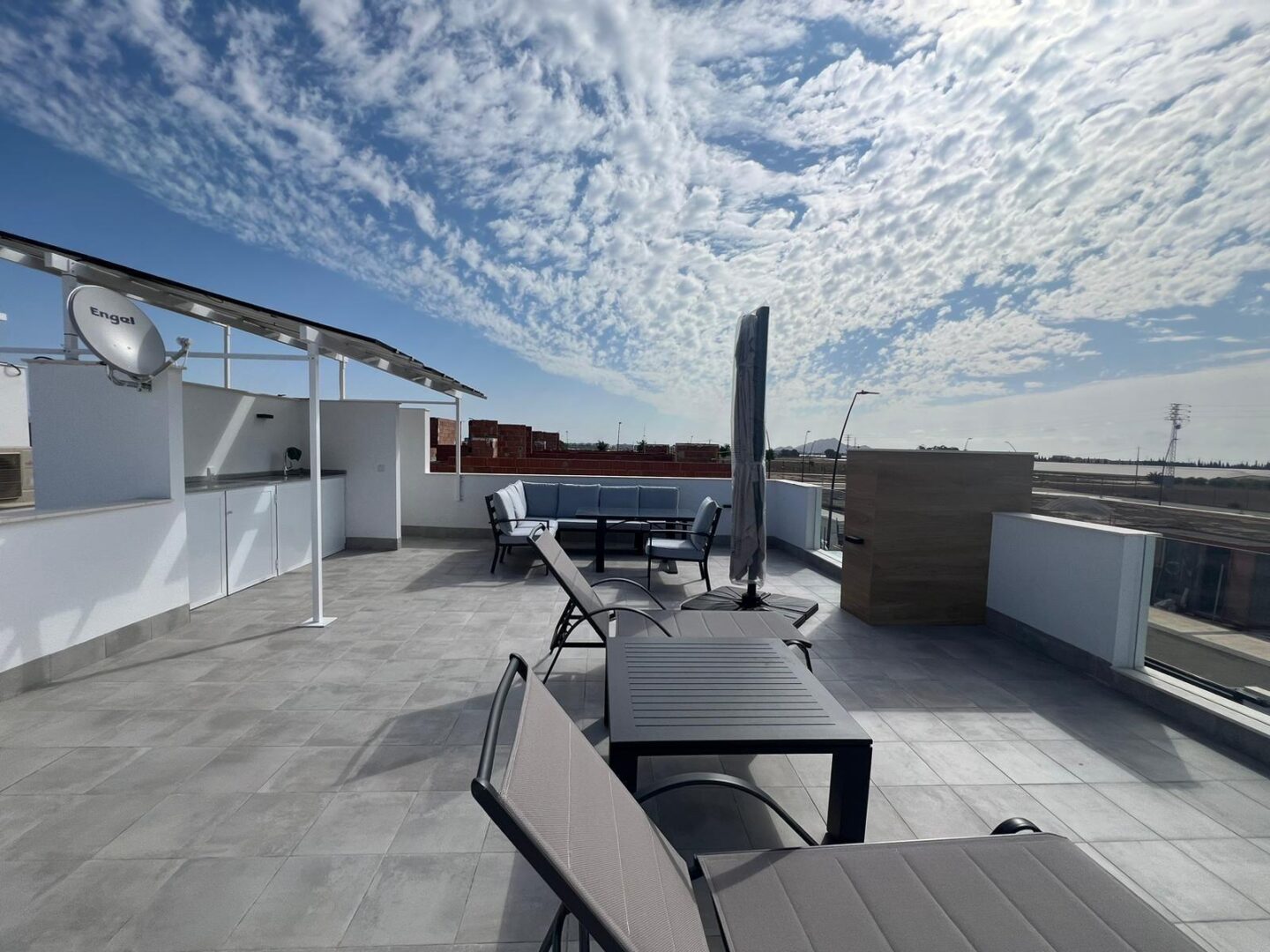 56m² Solarium: Eine atemberaubende Dachterrasse, ideal zum Genießen des Panoramablicks und für entspannende Momente in der Sonne.